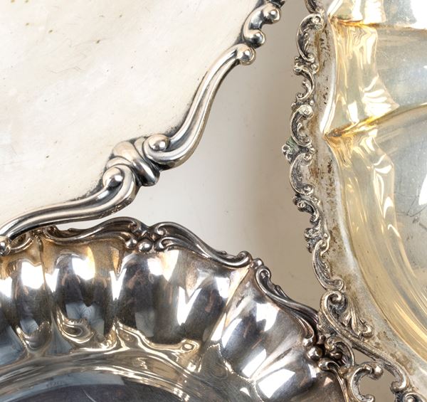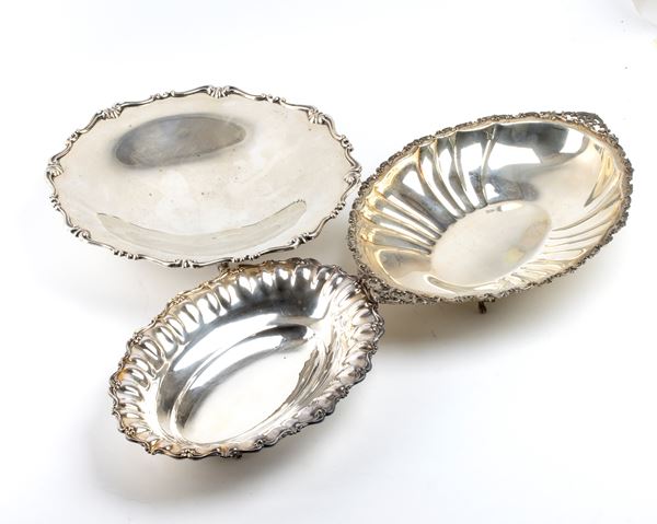 Lot of 3 italian solid silver baskets, Italy, 20th century