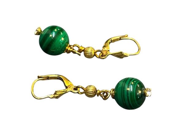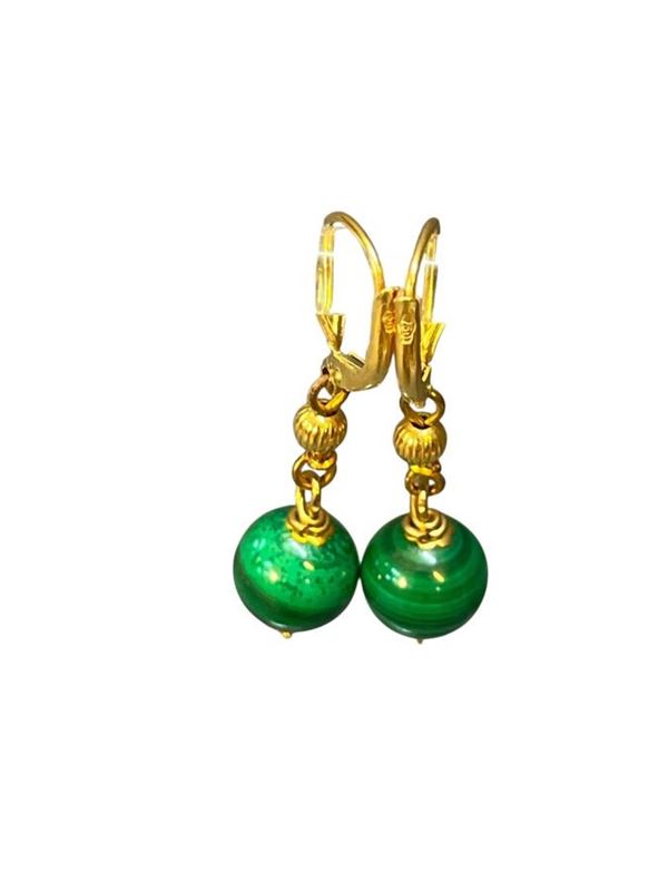 18k yellow gold, with malachite beads. Diameter 3.5 - 4 mm.