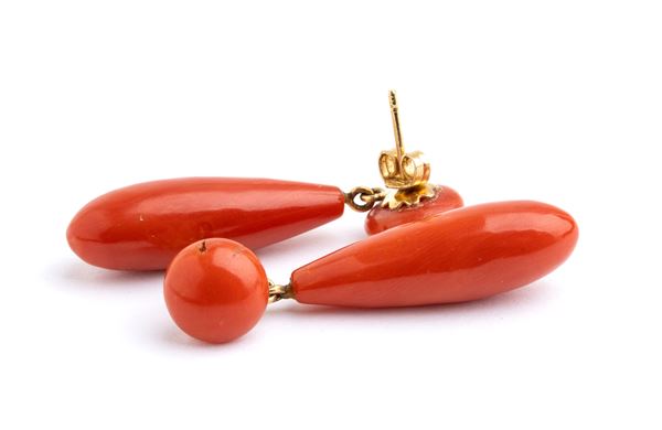 yellow gold, Mediterranean coral (Corallum Rubrum).