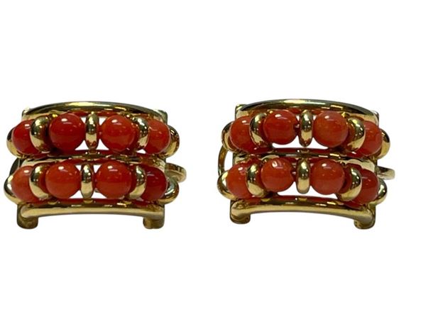 18k yellow gold, with small Mediterranean coral beads (Corallum Rubrum).