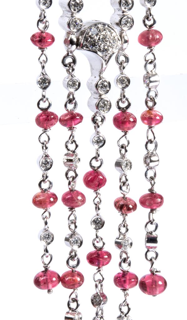 18k white gold, each designed as a fringe composed of polished spinel beads, accented by brilliant-cut diamonds.