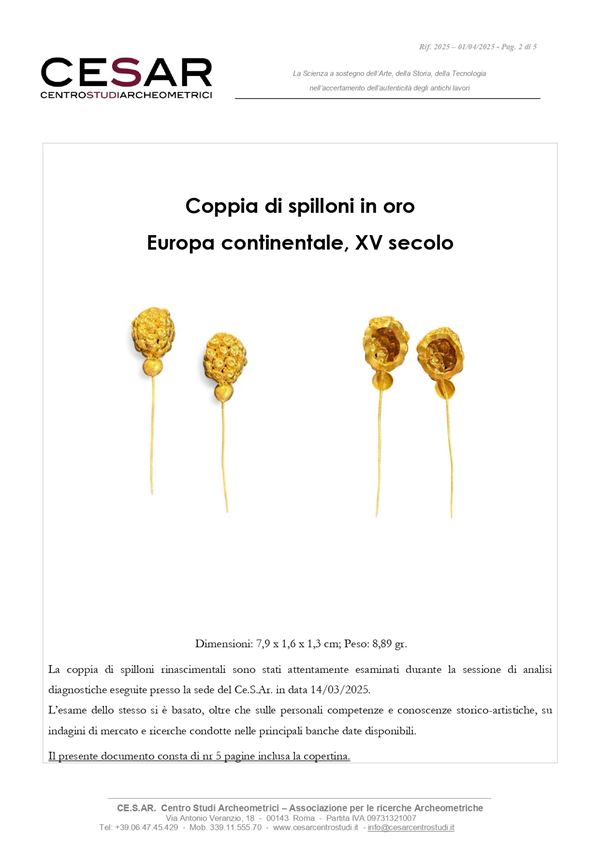 This lot is accompanied by an expertise issued by Ce.S.Ar Centro studi archeometici.