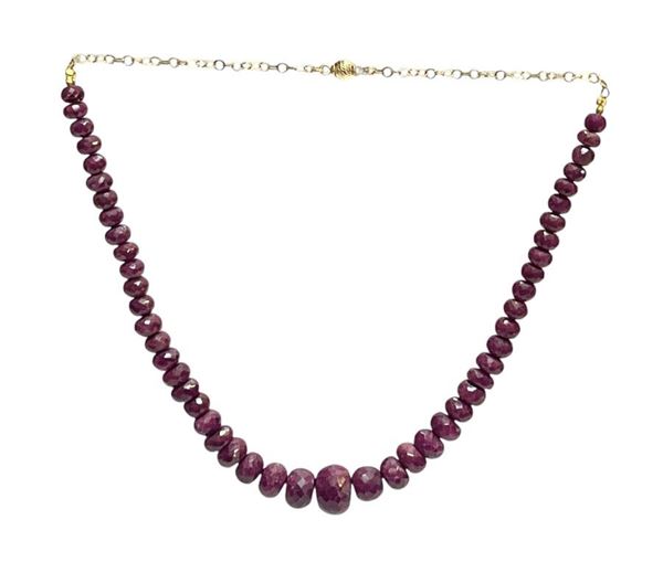one strand of graduated faceted beads, 18k yellow gold chain and clasp.