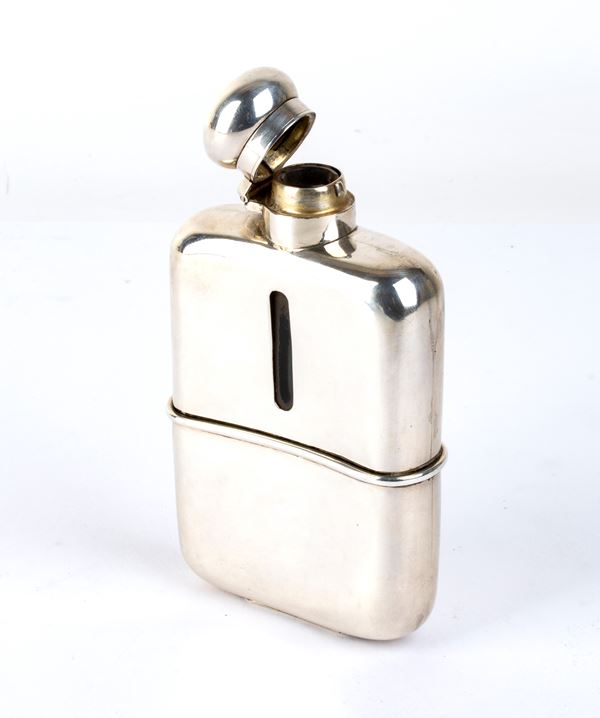 - flask characterised by a smooth body and a slightly rounded shape. The interior is lined with glass, which preserves the contents. The neck is narrow and there is a hinged lid.