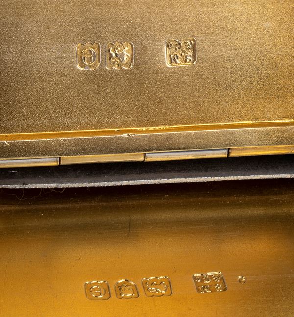 - Rectangular shaped card case featuring a striped pattern. The interior is in vermeil.