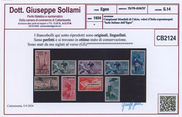 1934 - Calcio n.75/79 + A34/A37, nuovi con gomma, linguellata. Certificato Sollami.