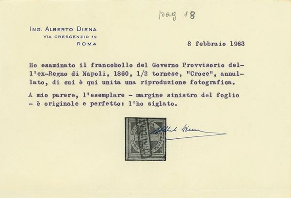 1860 - Crocetta 1/2 tr. azzurro n.16 di qualità straordinaria, freschissimo e angolo di foglio inferiore sinistro. Cat. 7.000 euro. (LUX) (Cert. Alberto Diena, Emilio Diena)