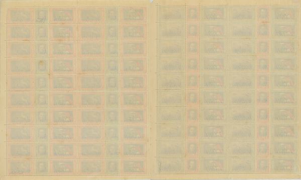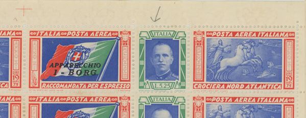 1933 - I trittici nei due fogli con la varietà ''CIUFFO''. I due fogli sono parzialmente aperti al centro, in particolare il n.51. Firma Bolaffi sul valore con la varietà. Raro insieme.