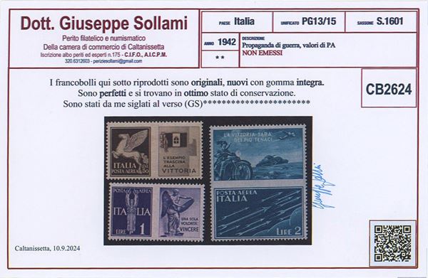 1942 - Propaganda di guerra, la serie non emessa n.12A/12C, nuova con gomma integra MNH. Certificato Sollami.
