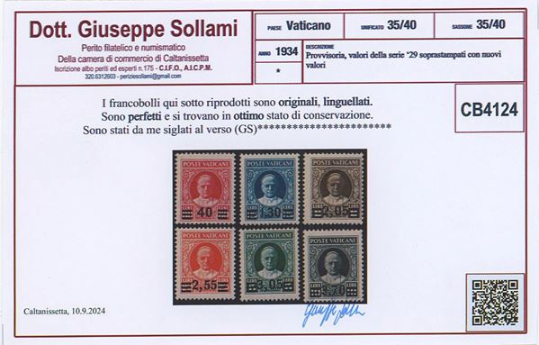 1934 - Provvisoria n.35/39 nuova con gomma, linguellata. Certificato Sollami.