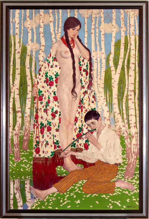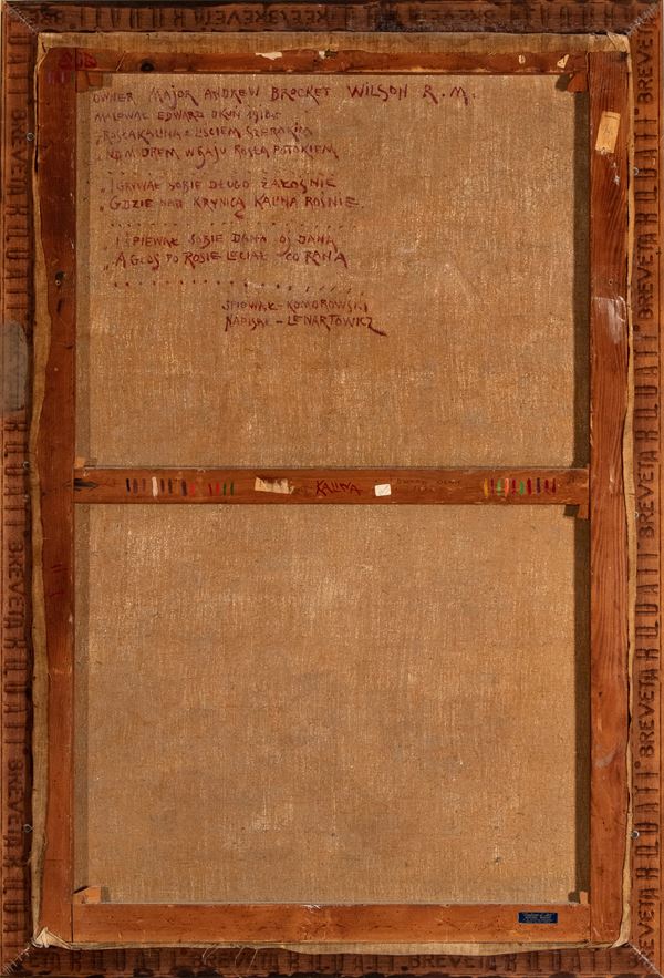 Signed and dated lower right: Okun, 1918. Signed and dated on the back with mention of the verse of the song written by Teofil Lenartovicz and set to music by Ignacy Komorowski