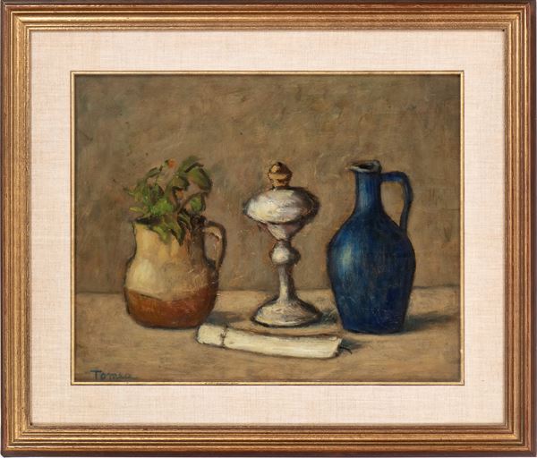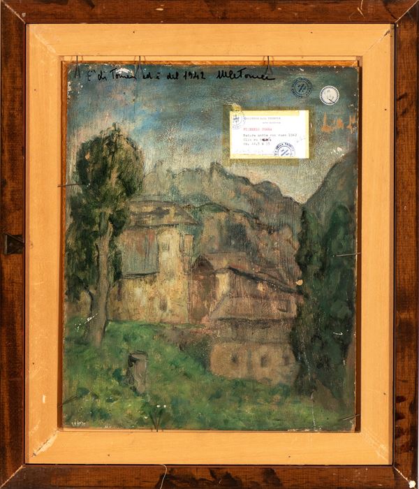 Signed lower left: Tomea. On the back painting of a landscape, label and stamp of Galleria della Trinità in Rome