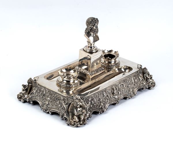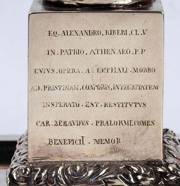 Italian silver inkwell with dedication to Alessandro Riberi, Turin, first half of the 19th century