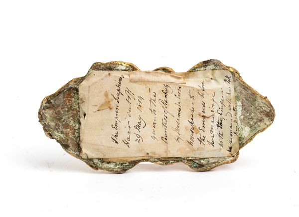 in gilded wooden frame; on the verso of both inscriptions for hair attributions and the date 29 May 1814. On that date, Napoleon Bonaparte received news in Elba of the death of his first wife, Josephine de Beauharnais, at the ChΓ’teau de Malmaison. Josephine had died following the after-effects of a fever. Napoleon and Josephine, although divorced, had maintained a strong bond.