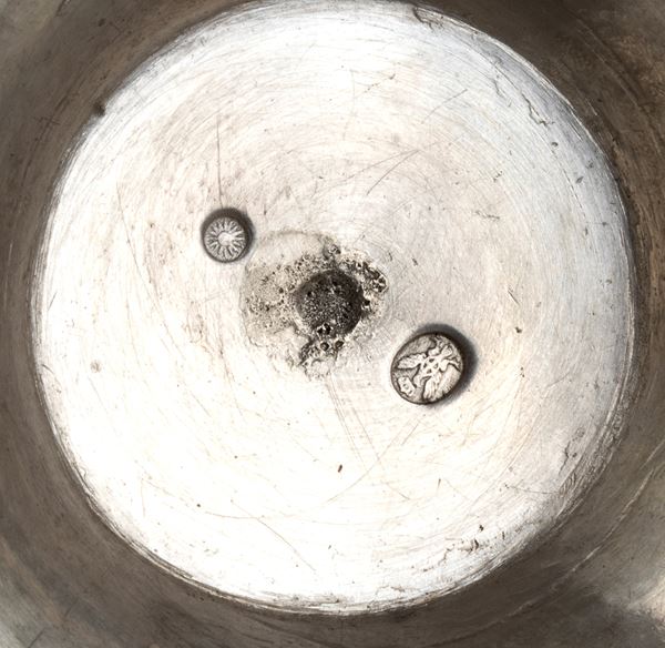 Hallmarked with the mark used for large standard (950/1000) silver work in use in Chambery, Kingdom of Sardinia, from 1824 to 1861 and with the mark of an unidentifiable silversmith.