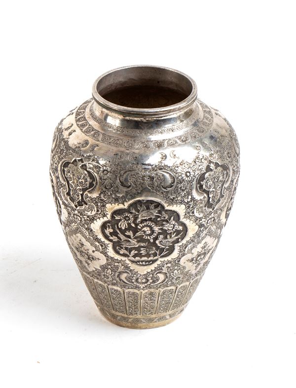 Solid silver Indian vase, 19th century