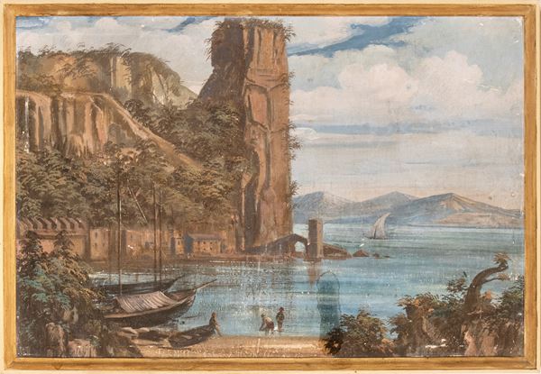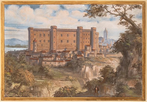 a) View of Bracciano Castle; b) View of the gulf of Terracina. Pair of paintings