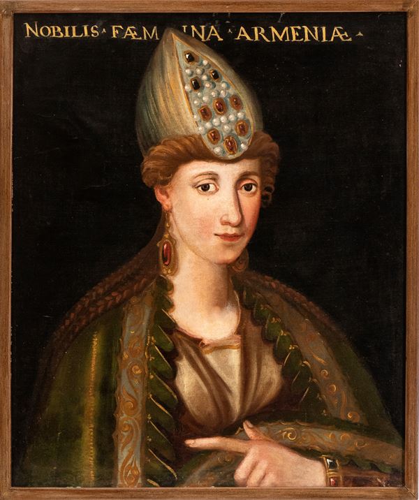 The portraits all bear brush inscriptions in the upper margin: a) "NOBILIS FAEMINA ARMENIAE"; b) "NOBILIS FAEMINA SIRA"; c) "NOBILIS FAEMINA TURCICA"; d) "FAE.NA INFERI.R ARME.NIE"; e) "NOBILIS FAEMINA SIRIACA"; f) "USOR SOLIMANI".