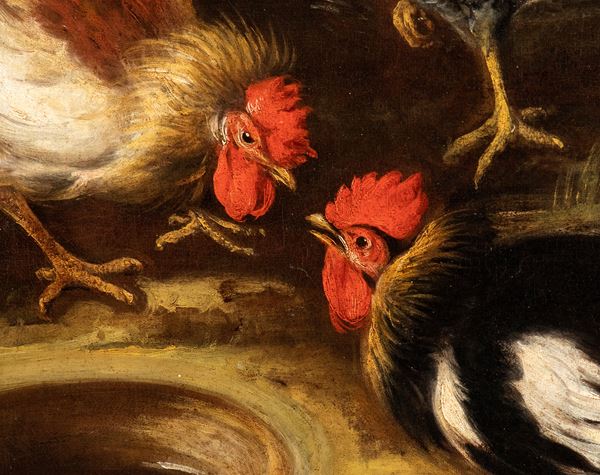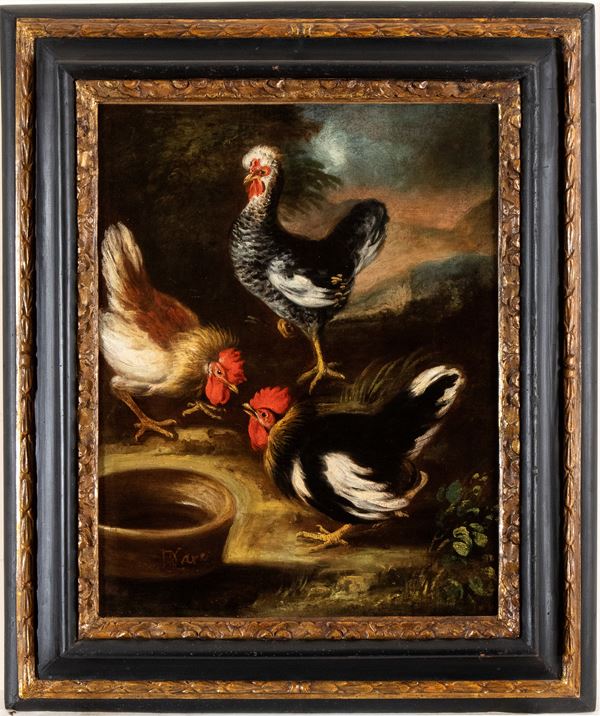 Landscape with cock fighting