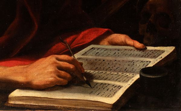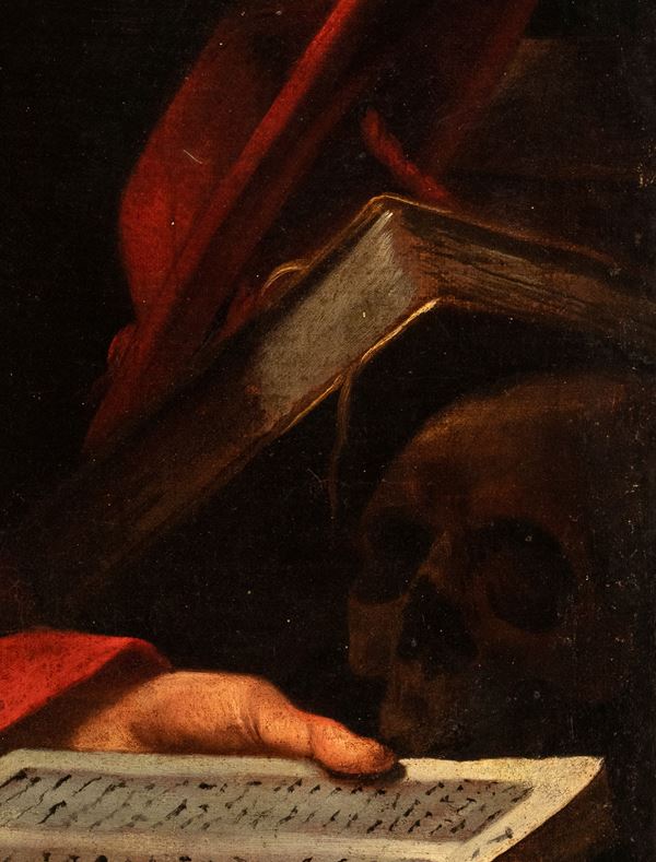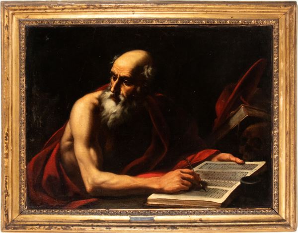 Questa tela di notevole intensità espressiva mostra esemplarmente la profonda influenza esercitata su Gregorio Preti da Caravaggio (a partire dal San Girolamo Borghese) e Ribera, ma anche la ricezione della maniera del fratello minore Mattia. San Girolamo appare qui come improvvisamente distratto dalla sua attività di traduzione in latino della Bibbia, più che da un evento fisico, da una sorta di agnizione spirituale, che giustifica il carattere vago ma assorto della sua espressione. Il dipinto è riferibile a una fase di piena maturazione dello stile di Gregorio, intorno alla metà del secolo, e si apparenta a opere come l'Eraclito e Democrito dell'Amministrazione provinciale di Catanzaro, il Martirio di San Bartolomeo della Galleria Sabauda di Torino e il Santo Vescovo in Collezione Taverna a Roma.