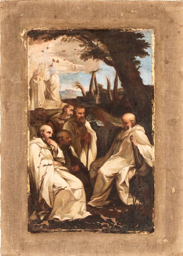 The painting is an early replica of the famous composition by Andrea Sacchi, known in several editions.