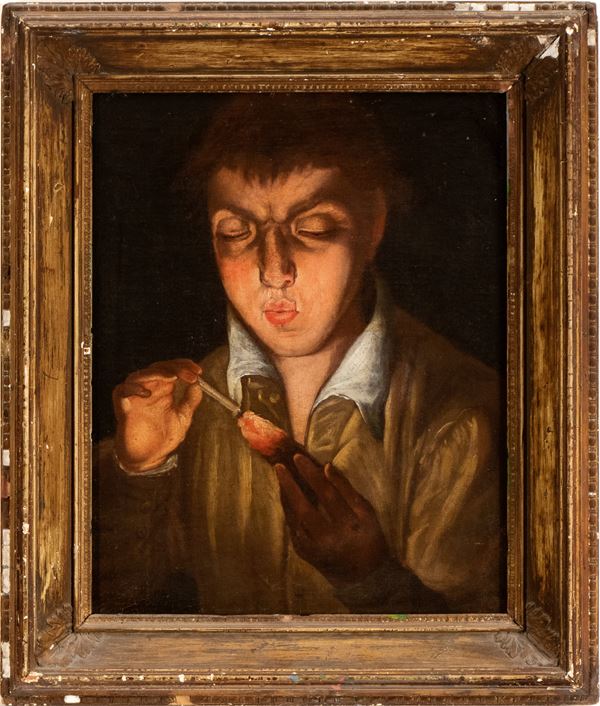 Young man blowing on an embers, 17th Century