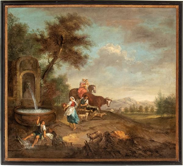 Landscape with fountain, shepherds and flocks