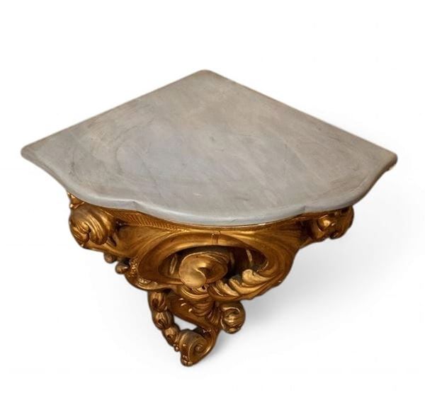 A pair of gilded Italian corner consoles, Louis XVI, Rome, 18th century