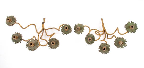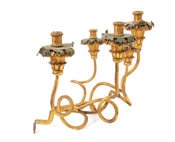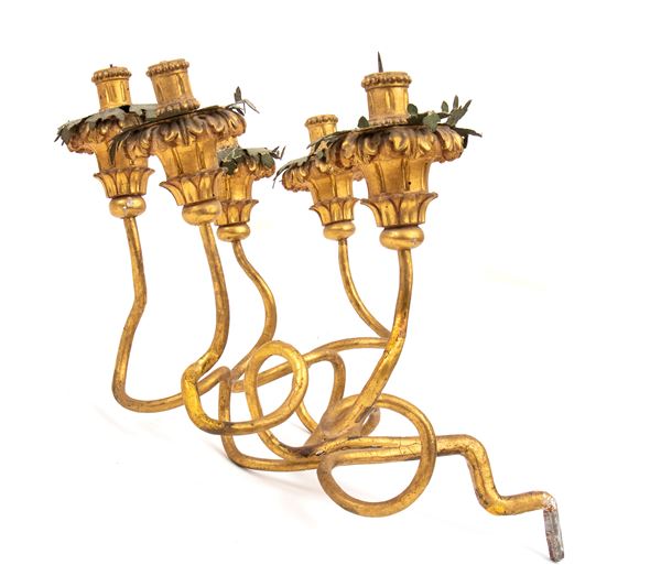 consisting of five gilded iron arms and the five flames of carved and gilded wood,