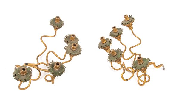 A pair of gilded Italian wall candleholders, Louis XVI, 18th century