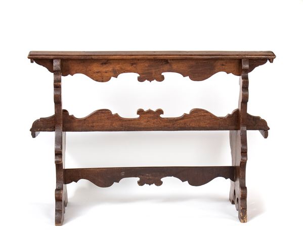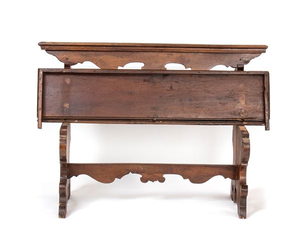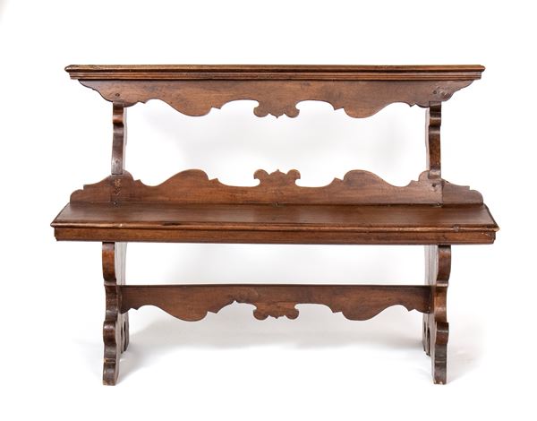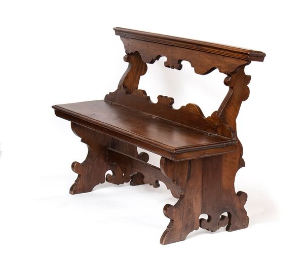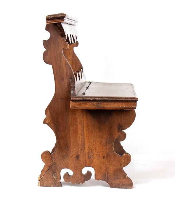 walnut, finely carved with folding seat.