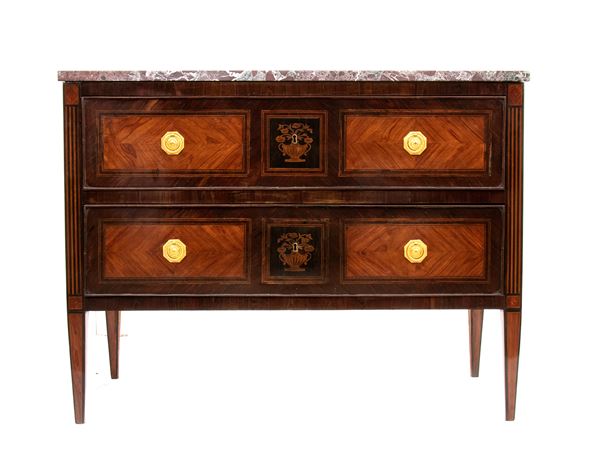 A pair of Italian inlaid chests of drawers, Louis XVI, Naples, 18th century