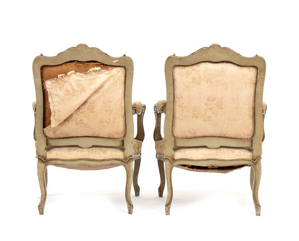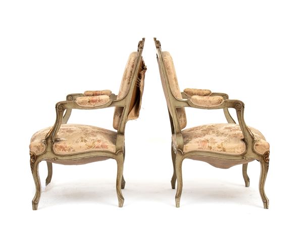 A pair of Swedish lacquered armchairs in Louis XV style, 19th Century