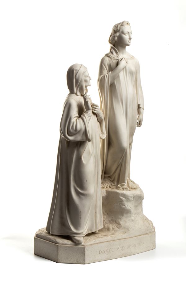 Depicting Dante and Beatrice, early twentieth century. Stamped R.J. Morris SC. copyright