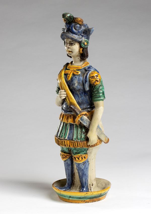 Caltagirone majolica oil lamp, Italy, 19th Century