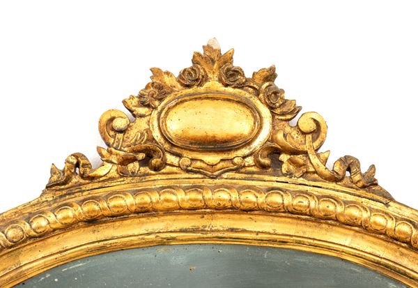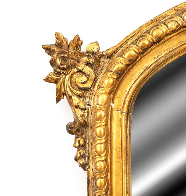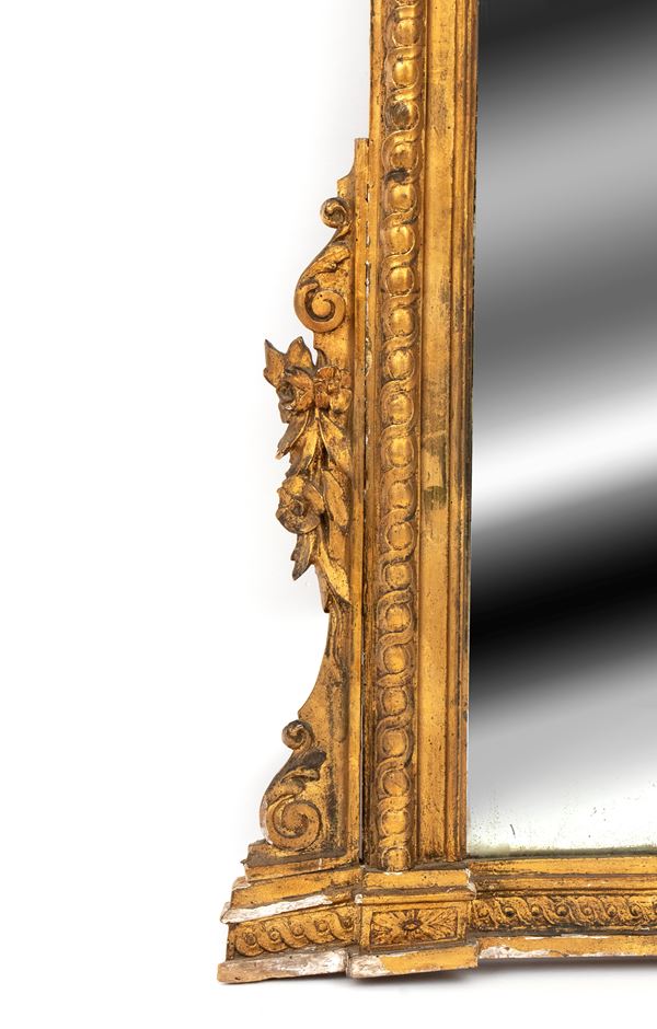 large chimney mirror, with perimeter decoration in ovules and ribbons, cymatium and sides in plant motifs.