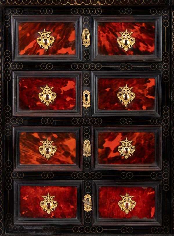 Italian ebonized wood and tortoiseshell coin cabinet, Lombard-Venetian, 18th century