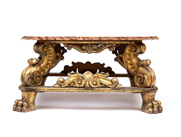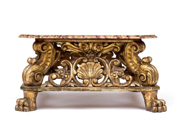 Italian gilt wood table with marble top, Central Italy, 18th century