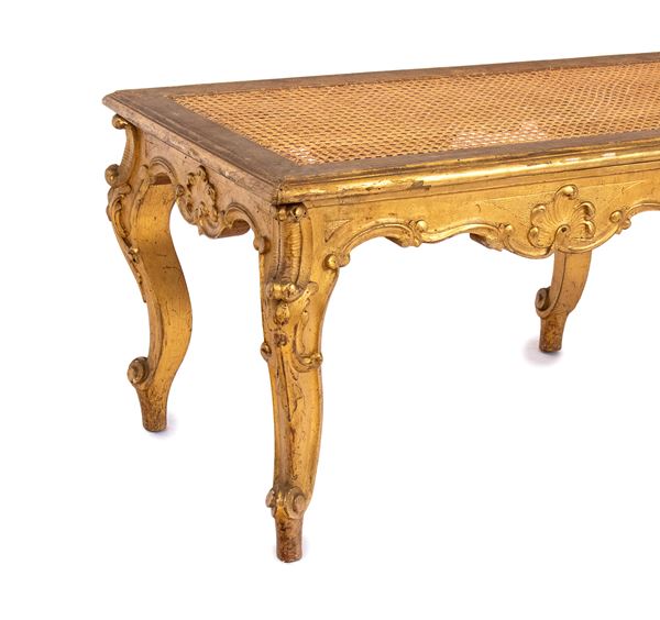 Vienna straw seat, with cabriolet legs, finely carved and gilded with gold leaf.
