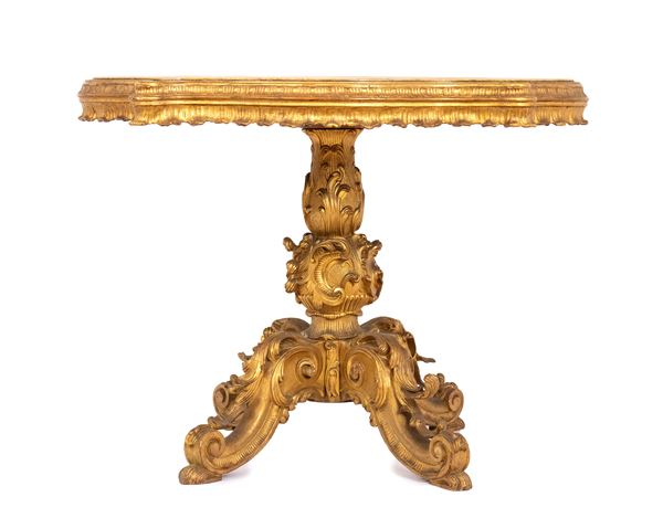 Italian Louis XVI gilded center table, Rome, 18th Century