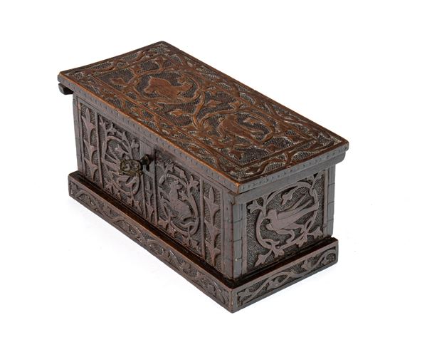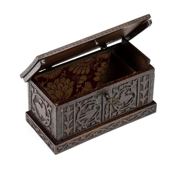 Bergamo area, finely carved with animal motifs, accompanied by original key.