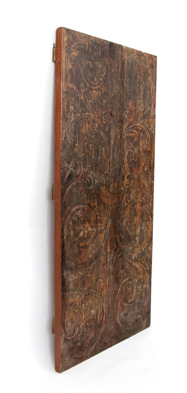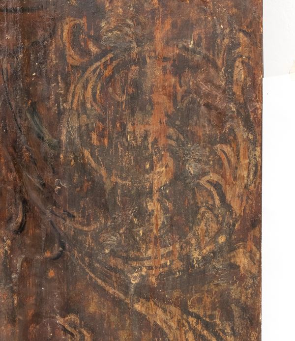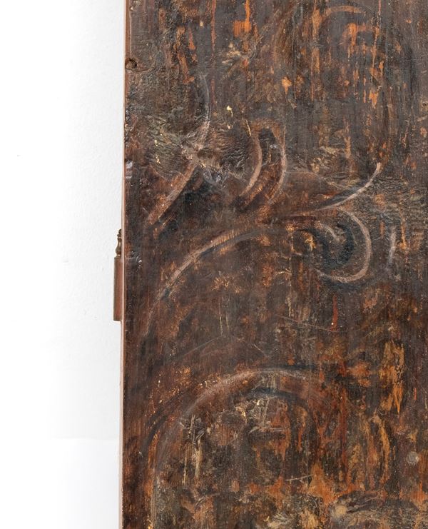 first half of the 19th century, central-northern Italy area, red lacquer on the rusticated side, the other side painted with floral motifs.