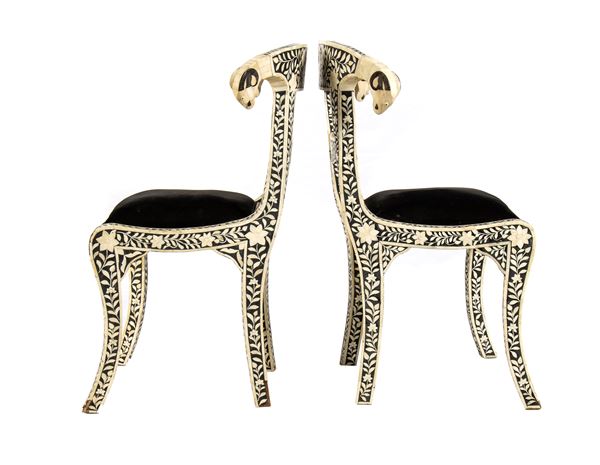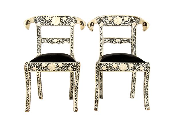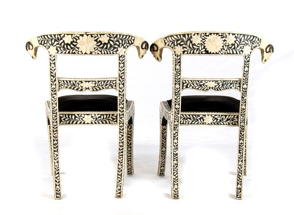 Pair of Anglo-indian ebony and bone chairs, 19th Century