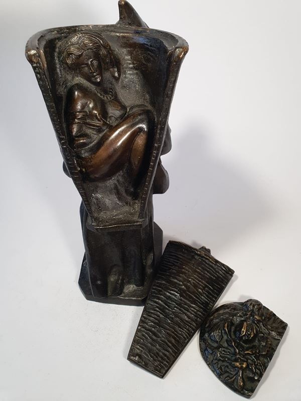 Friar with a naked woman hidden in his basket, Milanese foundry "Sacchi", early 20th century