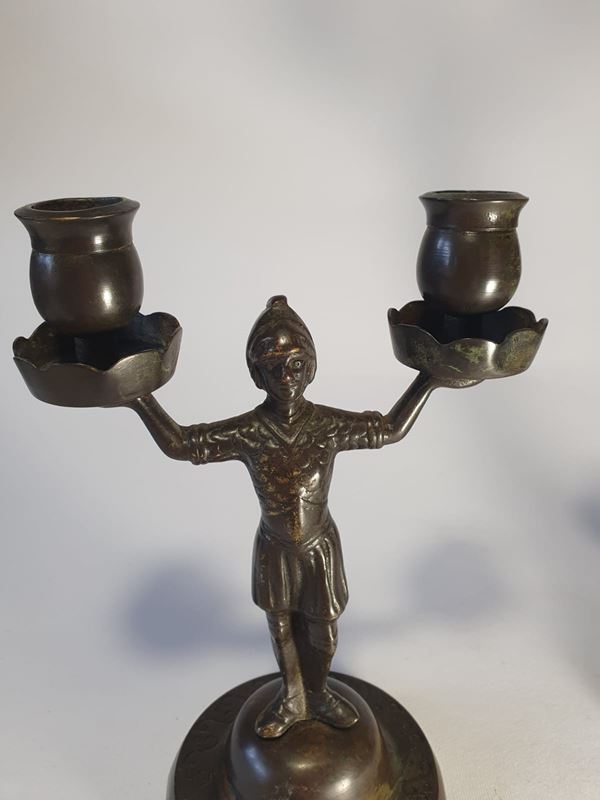 Medieval style armiger candlesticks, Germany, 19th century