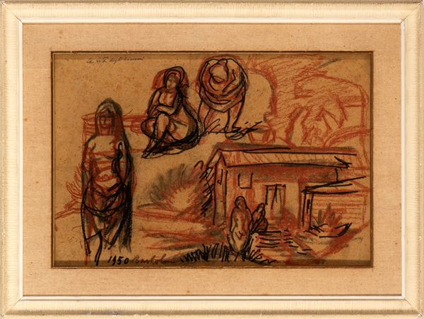 Title upper left: La vita degli zingari, dated and signed lower left: 1950, Bartolini
