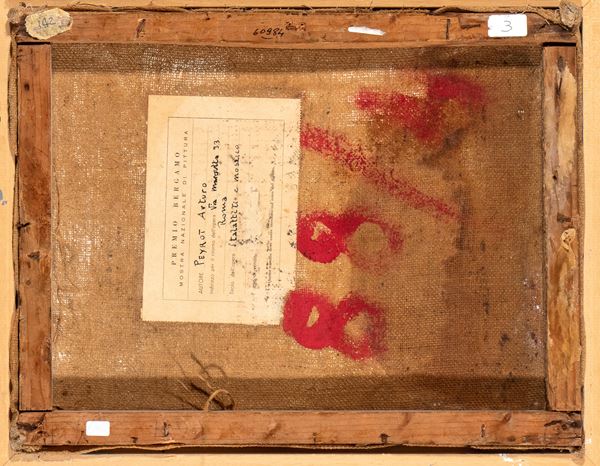 Signed lower right. On the back a label of Premio Bergamo