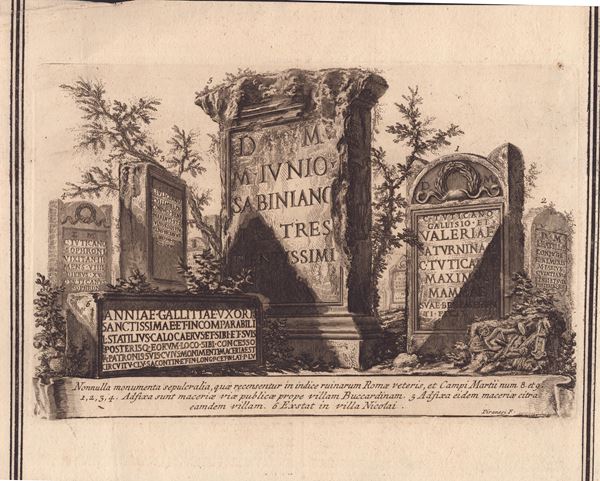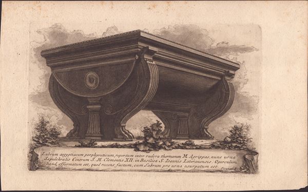 Lotto di due incisioni. Acquaforte, 185 x 290 mm (lastra), 235 x 380 mm (foglio) e 190 x 293 mm (lastra), 260 x 335 mm (foglio). Tavole tratte dal Campo Marzio. Focillon 433 e 434.