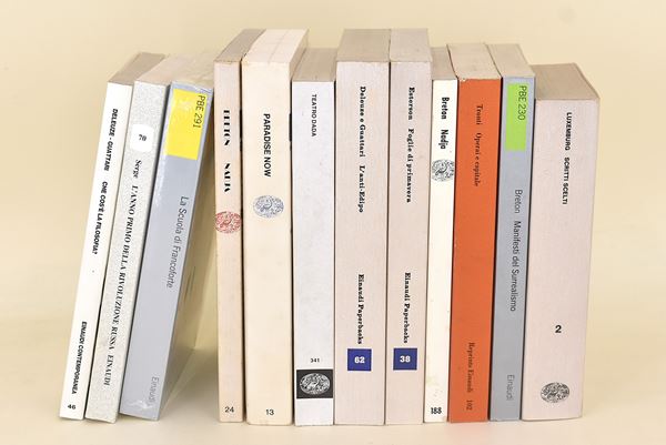 Gilles Deleuze e Felix Guattari, Che cos'è la filosofia? (1996, Contemporanea n. 46). Victor Serge, L'Anno primo della Rivoluzione Russa (1991, Tascabili n. 70). Adorno Fromm, Horkheimer Lowenrhal, Marcuse Pollock, La Scuola di Francoforte. Storia e testi. Piccola Biblioteca Filosofia n. 291 (incellofanato). Deleuze e Guattari, L'anti-Edipo. Capitalismo e schizofrenia (1976, Paperbacks n. 62). A. Esterson, Foglie di primavera. Un'indagine sulla dialettica della follia (Paperbacks n 38). André Breton, Nadja (1992, Nuovi Coralli n. 188). Mario Tronti, Operai e capitale (1980, Reprints n. 102). André Breton, Manifesti del Surrealismo. Introduzione di Guido Neri (2003, Piccola Biblioteca Saggistica letteraria e linguistica n. 230). Rosa Luxemburg, Scritti scelti. A cura di Luciano Amodio (1976, NUE Nuova Serie n. 2). Teatro Dada (1988, Gli struzzi n. 341). André Breton, Nadja (1972, Letteratura n. 24). Paradise now. Testo collettivo del Living Theatre (1970, Letteratura n. 13).