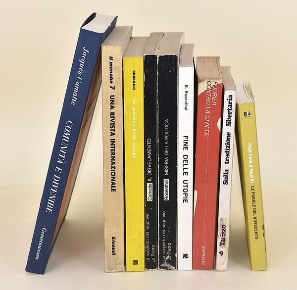 Pier Carlo Masini, Le parole del Novecento (BFS edizioni, 2010). Charles Fourier, Contro la civiltà (Guaraldi editore, 1971). D. Tarizzo, Sulla tradizione libertaria (Edizioni Ottaviano, 1977). Bernard Rosenthal, Fine delle utopie sul buon governo (Arcana editrice, 1979). Bernard Rosenthal, 1Miseria della politica. Risposta alla politica della miseria delle ideologie correnti (La Pietra, 1978). Marco Sassano, La politica della strage (Marsilio editori, seconda edizione, 1972). Autori vari, Una rivista internazionale (Einaudi, 1964, difetti). Jacques Camatte, Il disvelamento (La Pietra, 1978). Jacques Camatte, Comunità e divenire (Gemeinwesen, 2000).